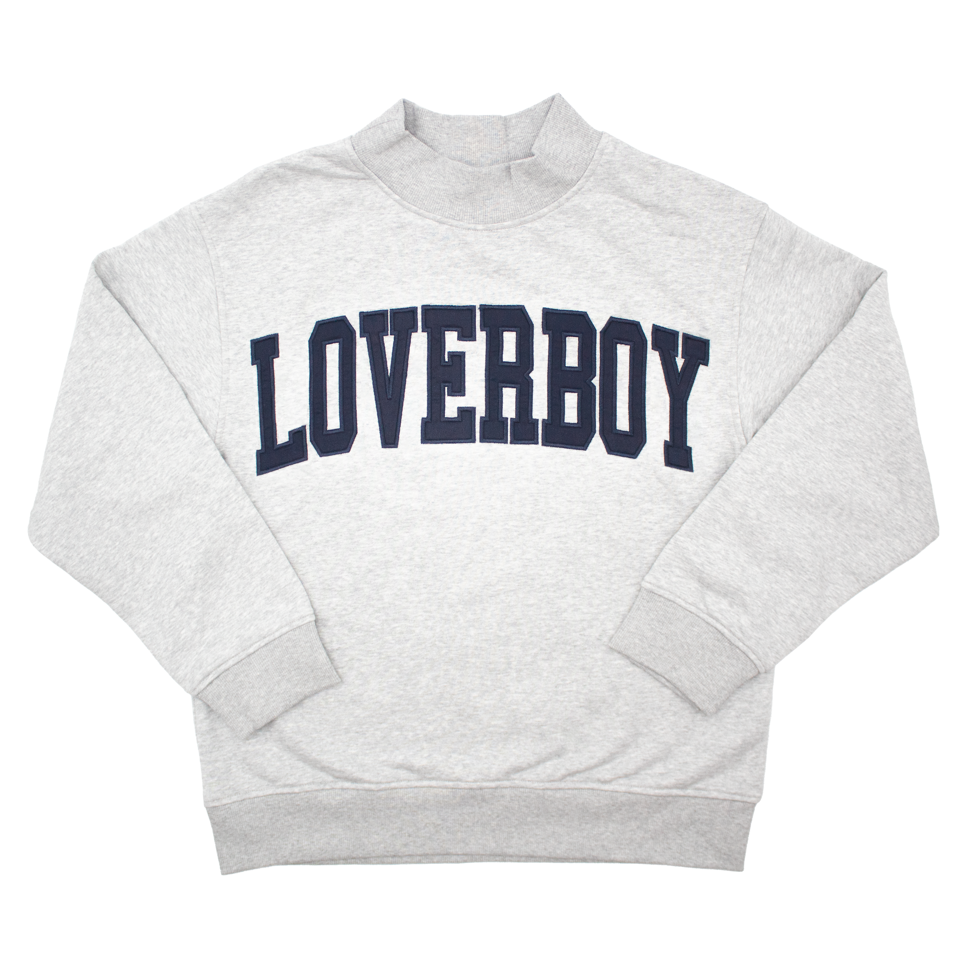 Mockneck-style sweatshirt with "LOVERBOY" logo on front. Custom made and our highest quality sweatshirt yet! Unisex sizing. Oversized fit. Wash and dry inside out.